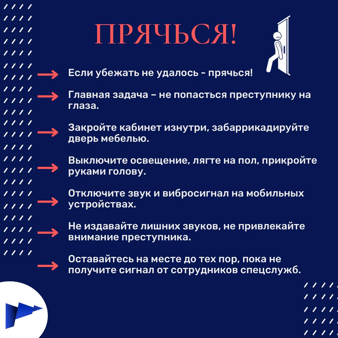 Мы подготовили для вас информативные карточки порядка действий при ЧС в условиях образовательной среды на основании Методических рекомендаций Национального Антитеррористического Комитета