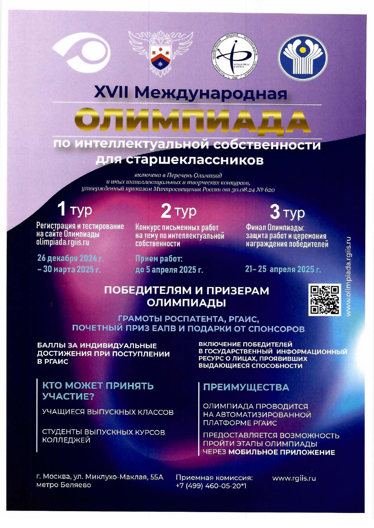 Приглашаем выпускников школ, лицеев, гимназий и колледжей принять участие в XVII Международной олимпиаде по интеллектуальной собственности